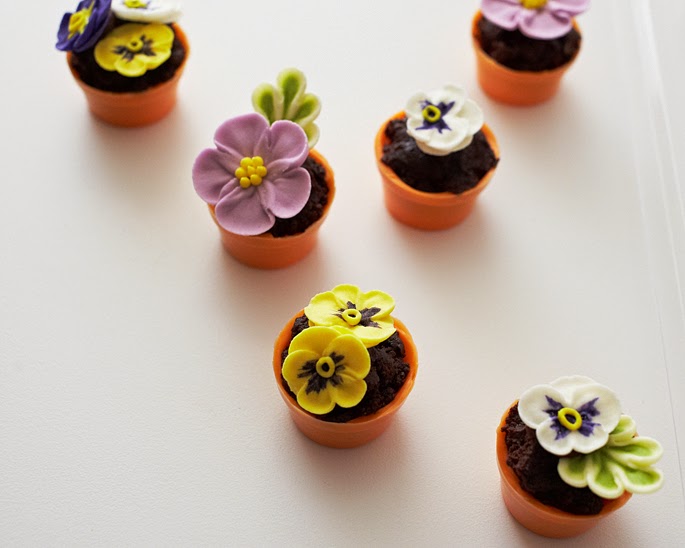 If you like, you can glue on a couple of small blossoms and tiny leaves for the girl cupcake toppers.